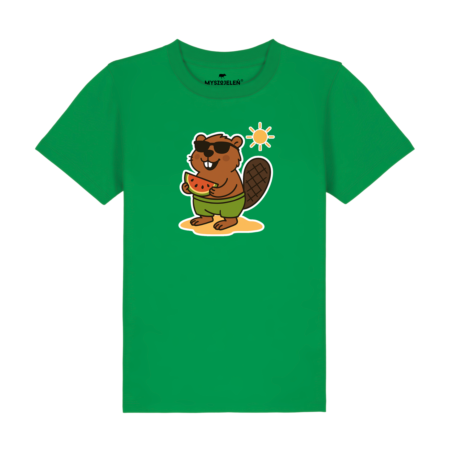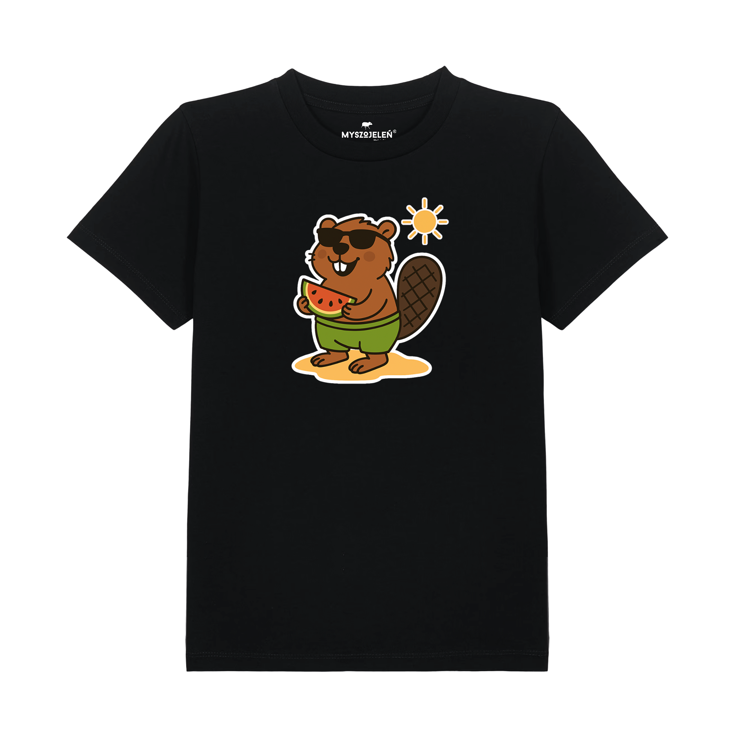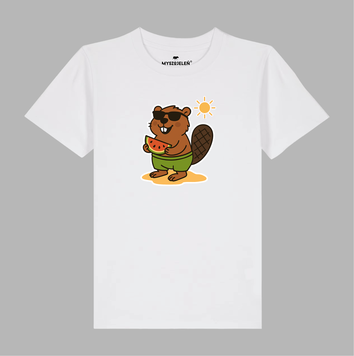 Koszulka z nadrukiem bobra w wakacyjnej odsłonie z przodu.