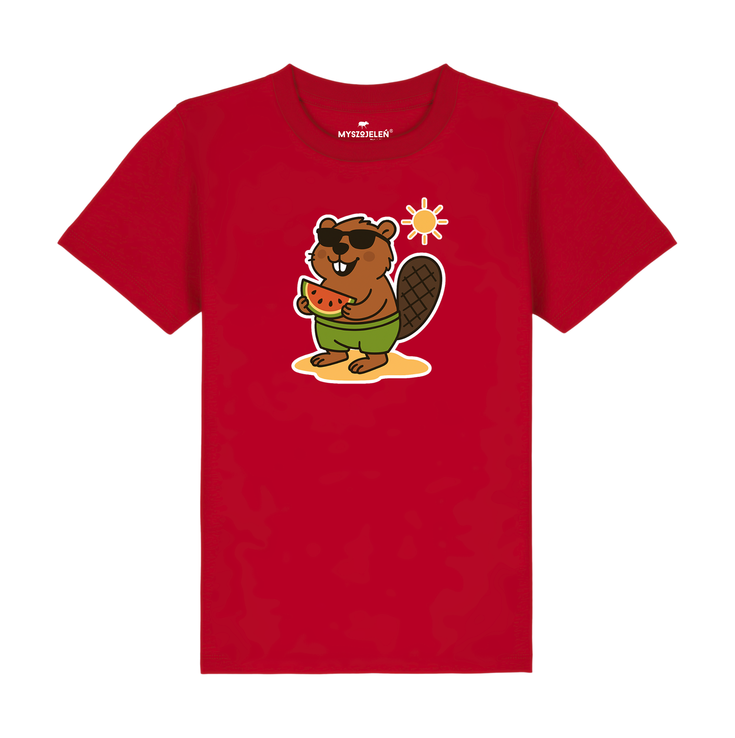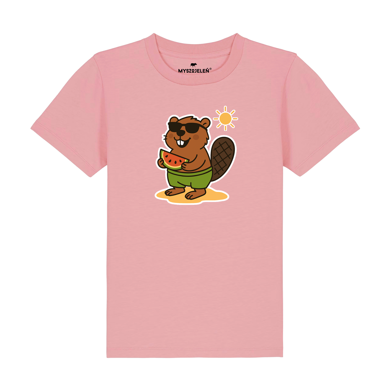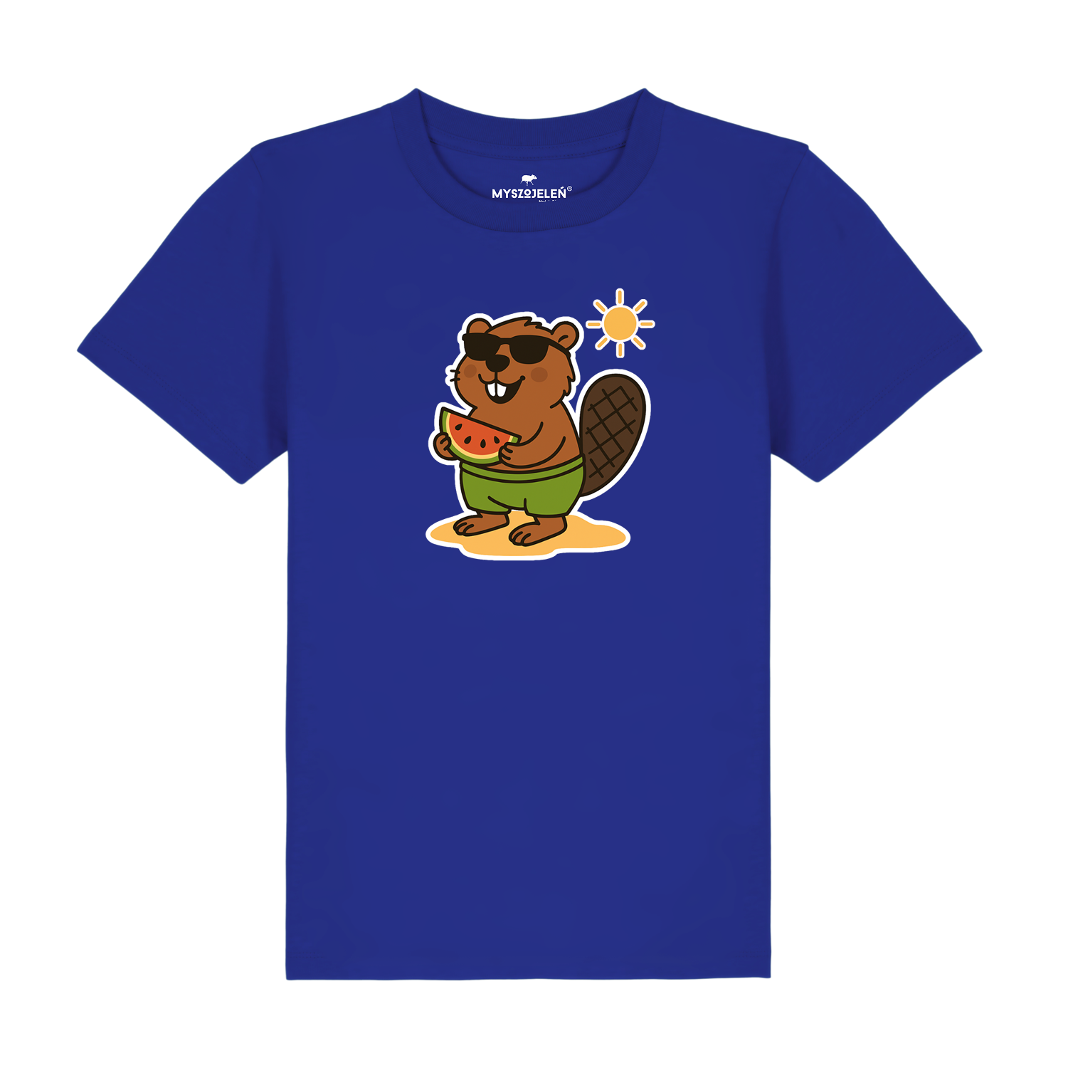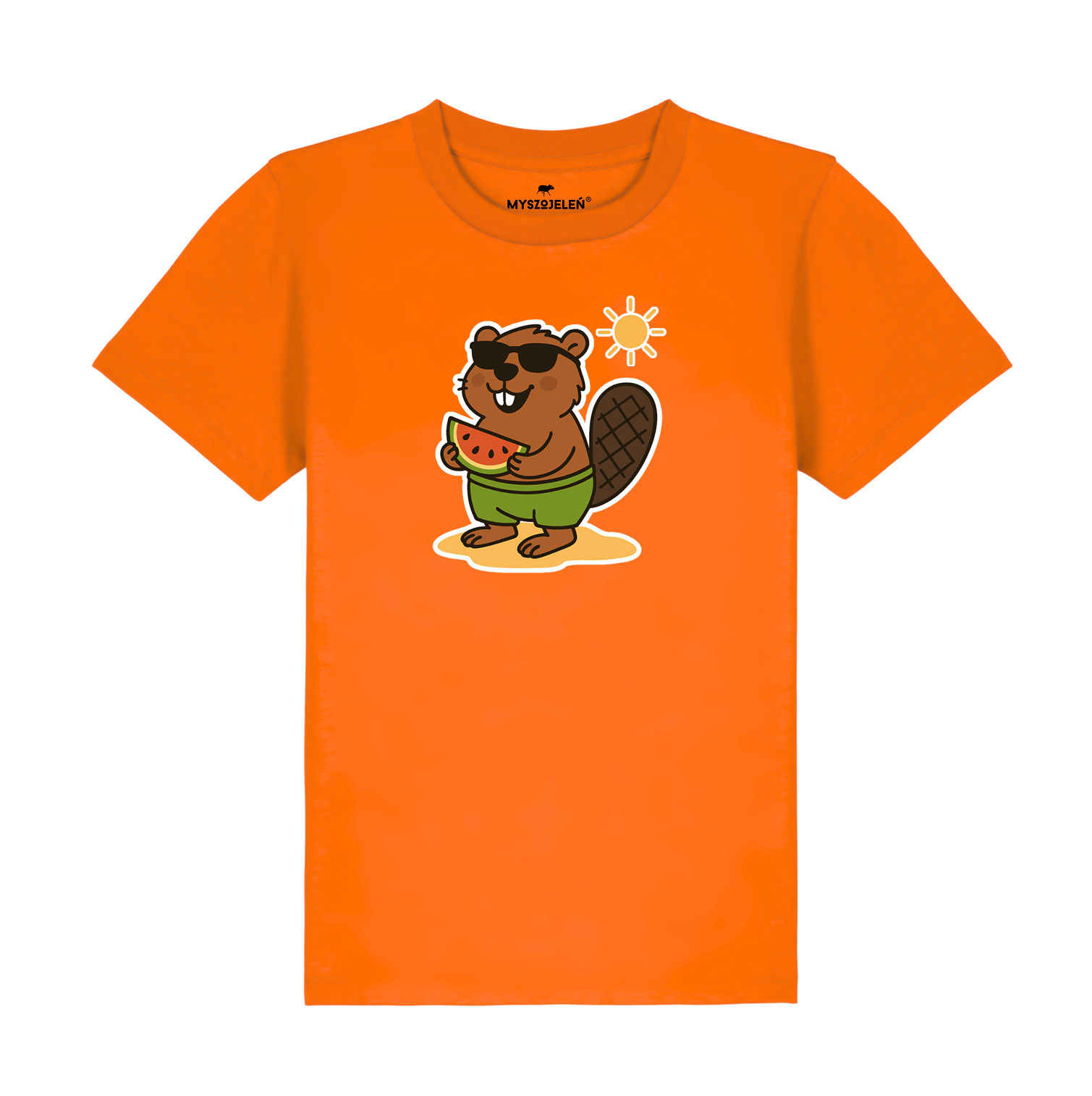 Koszulka z nadrukiem bobra w wakacyjnej odsłonie z przodu.