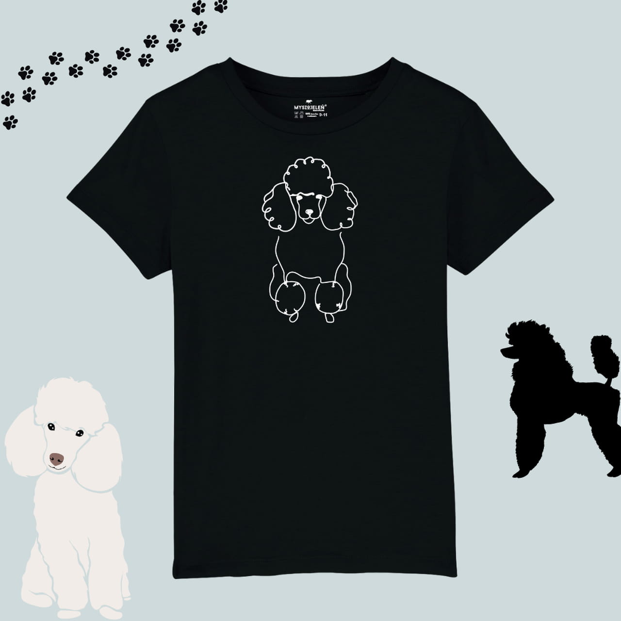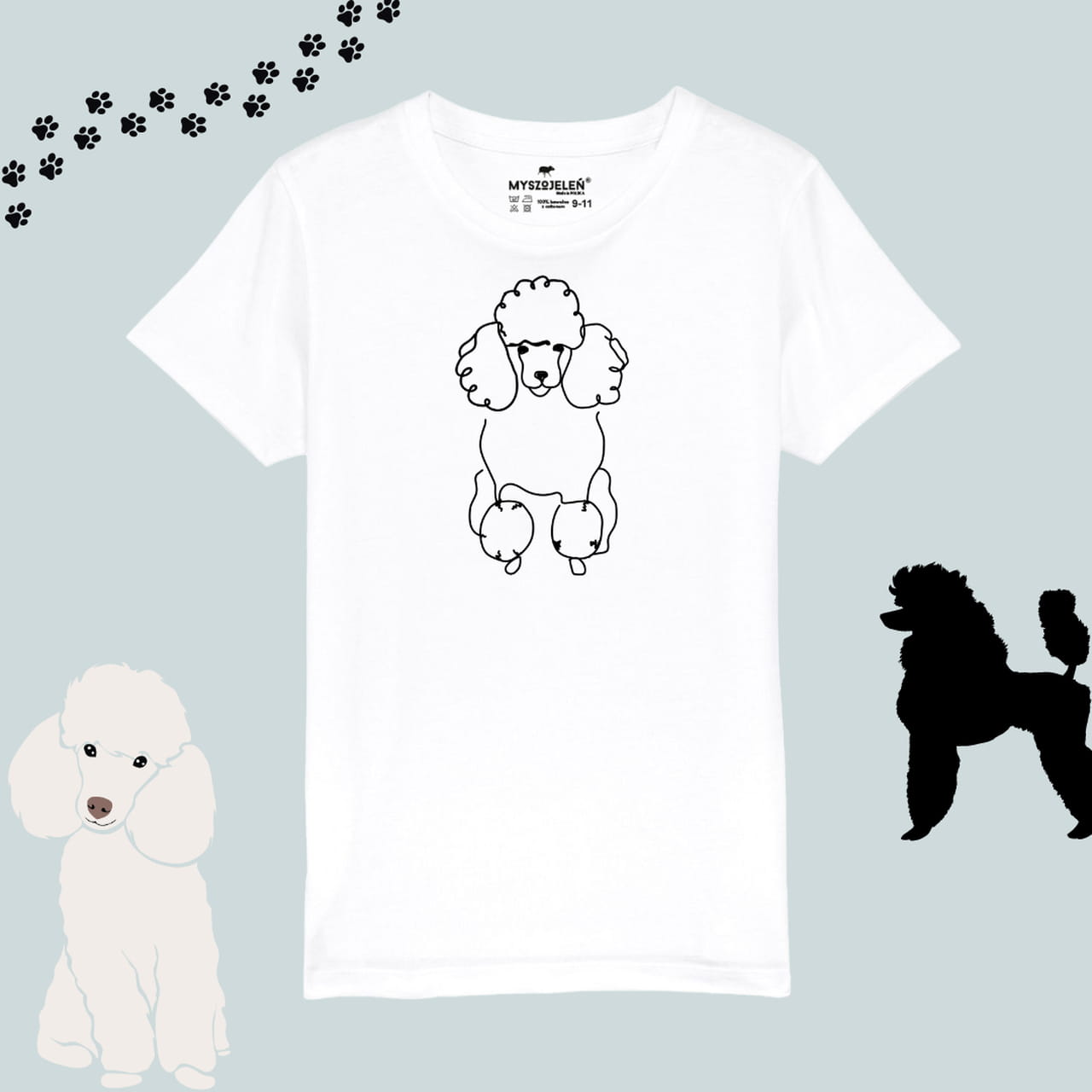 Koszulka z minimalistycznym nadrukiem pieska - rasa PUDEL - w wersji dla dzieciaków.