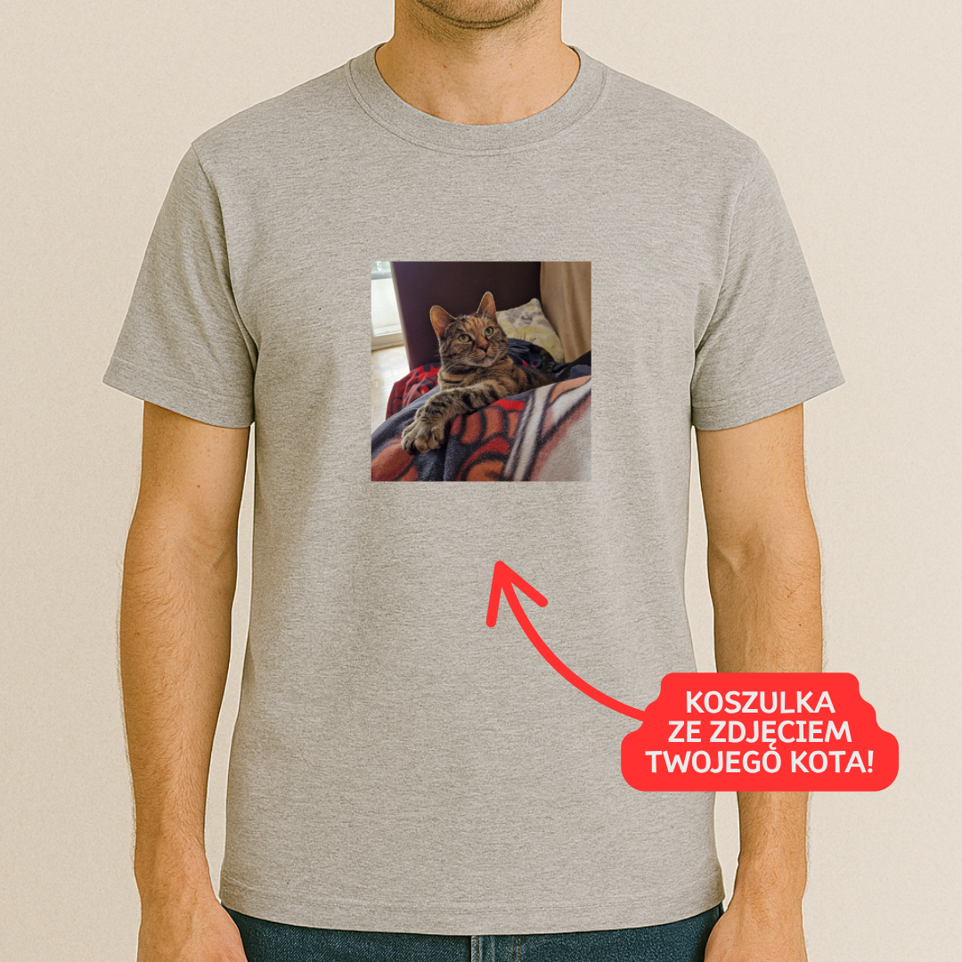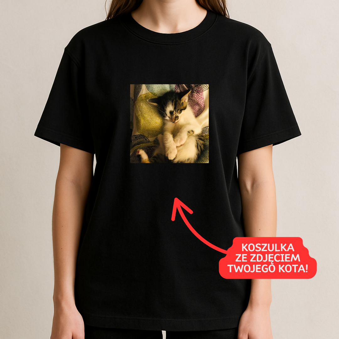 Jeśli Twoim marzeniem była koszulka z własnym kotkiem, chętnie ją dla Ciebie wykonamy :)