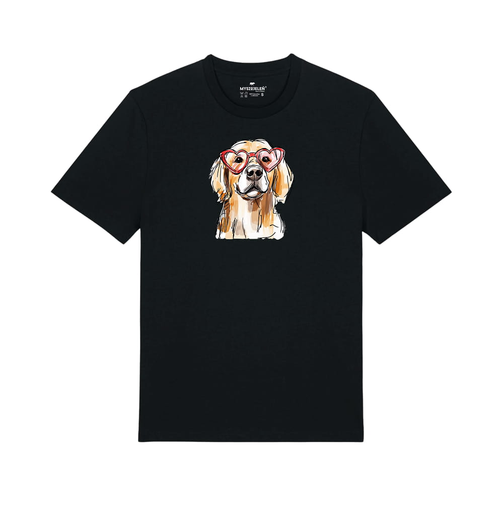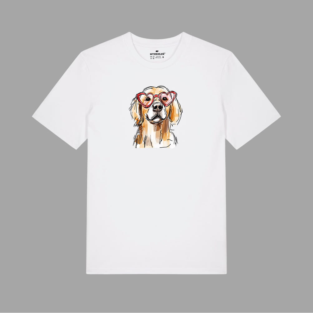 Koszulka z nadrukiem GOLDEN RETRIEVER W OKULARACH (SERDUSZKA)