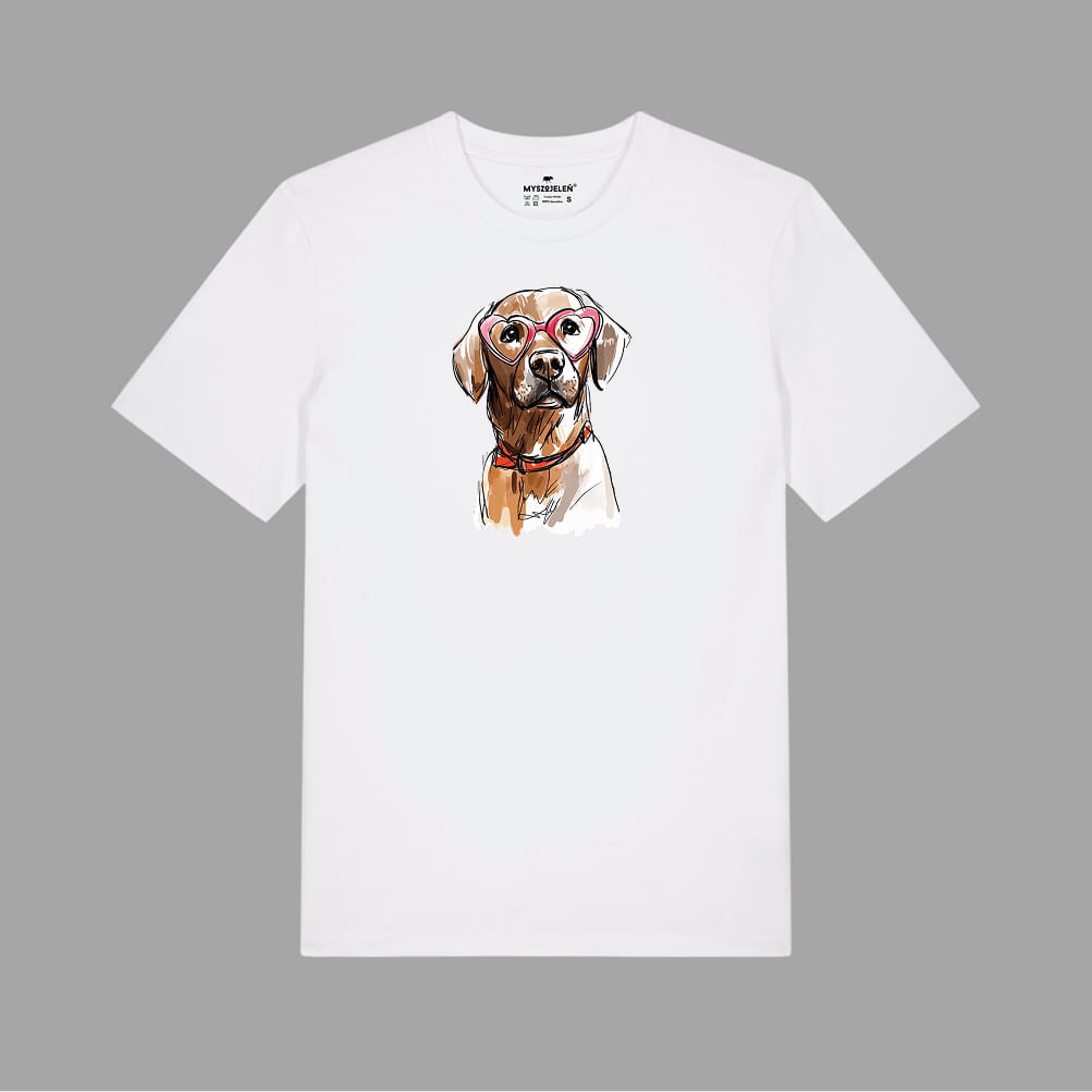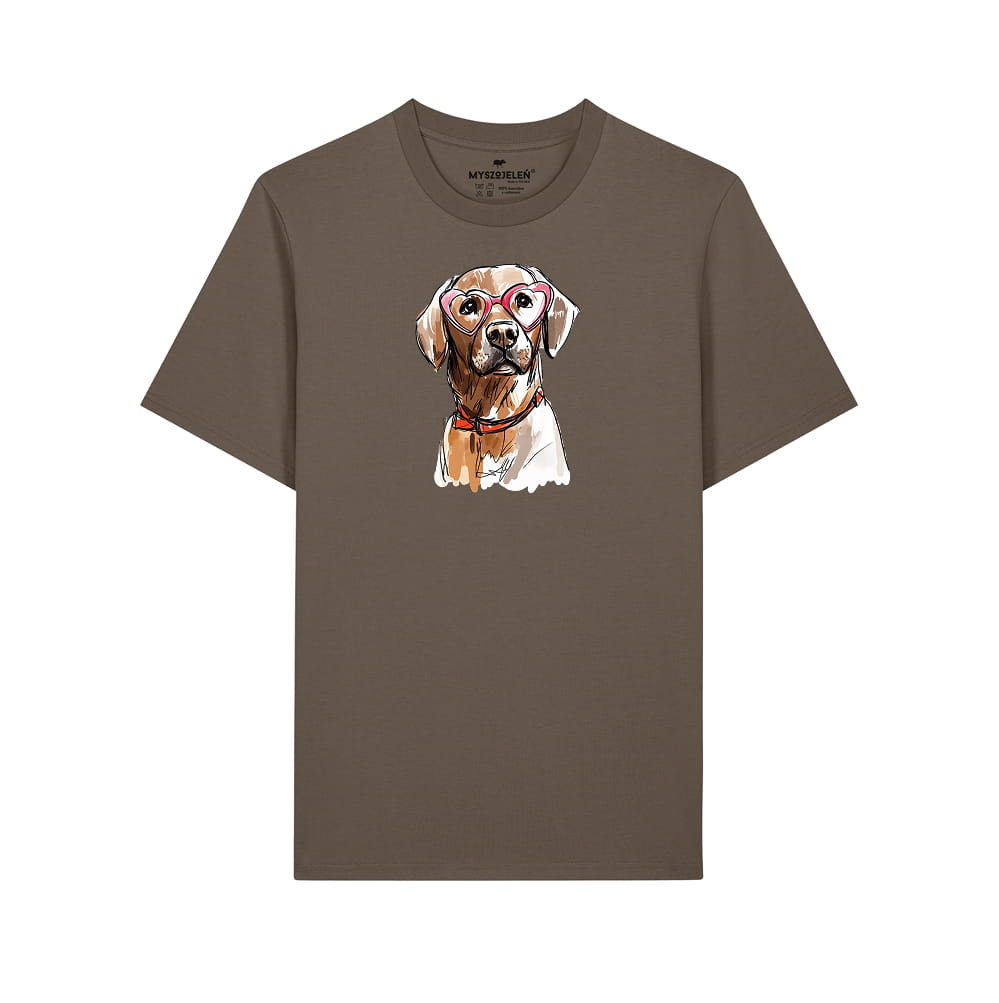 Koszulka z nadrukiem LABRADOR CZEKOLADOWY W OKULARACH (SERDUSZKA)