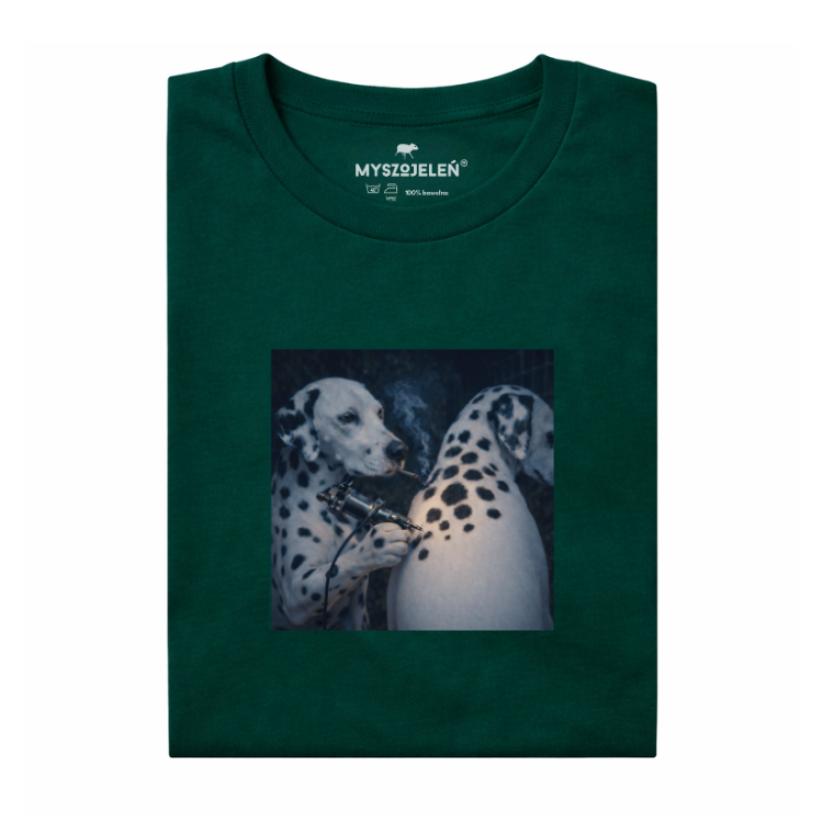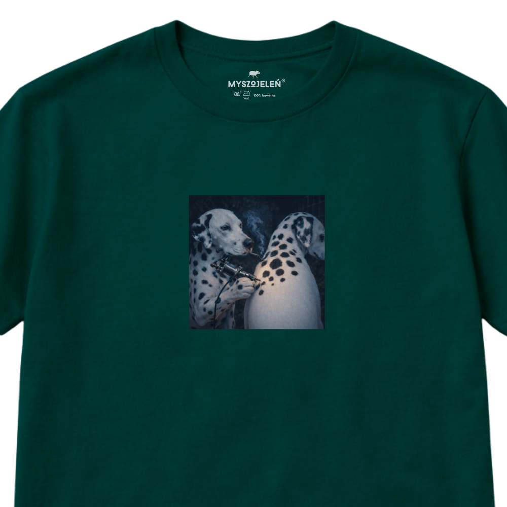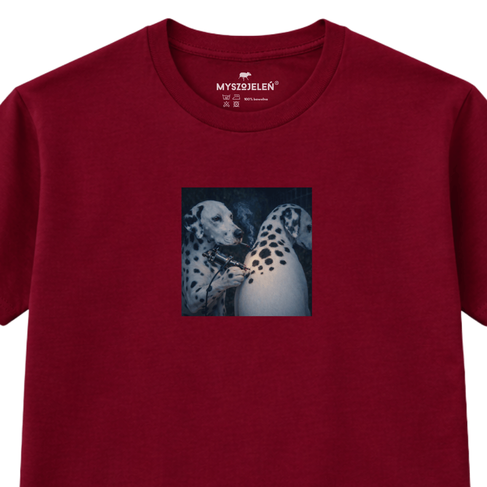 Tiszert z nadrukiem NOCNY DALMATYŃCZYK TATUAŻYSTA - retro klimat