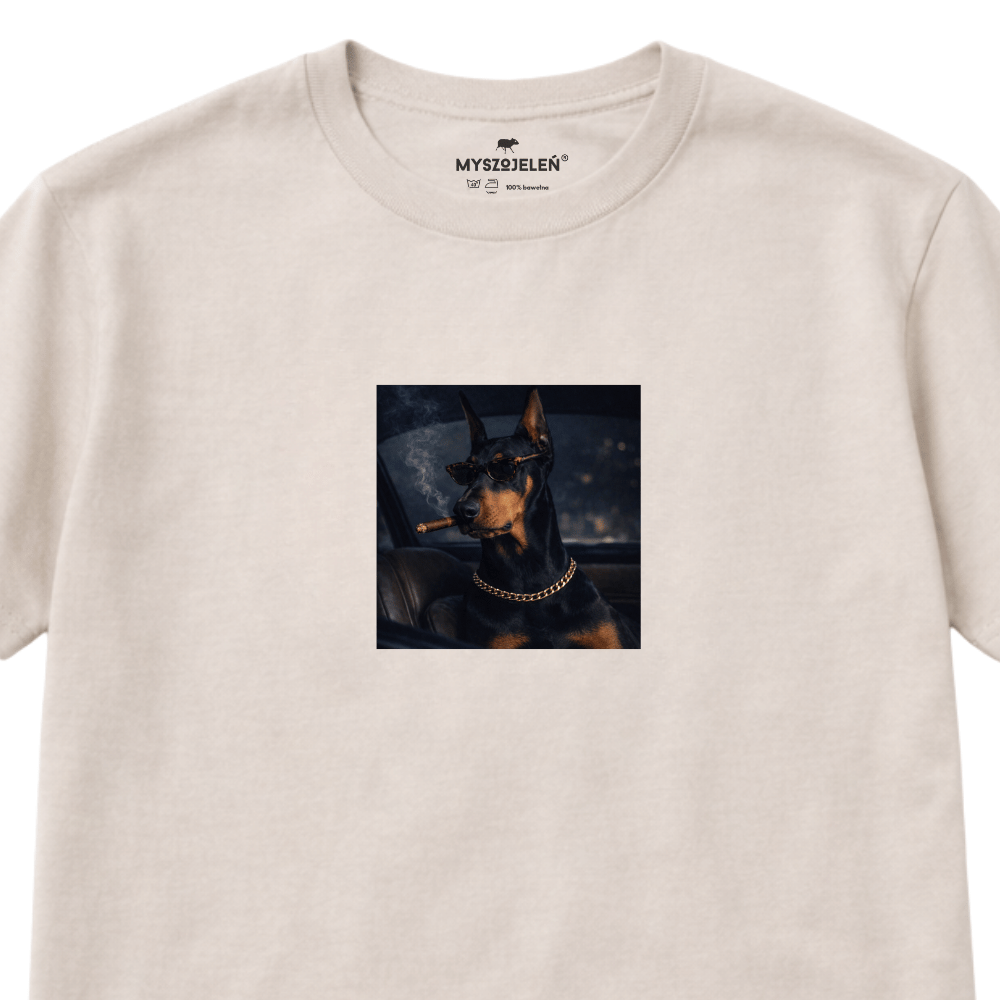 Tiszert z nadrukiem NOCNY DOBERMAN - retro klimat
