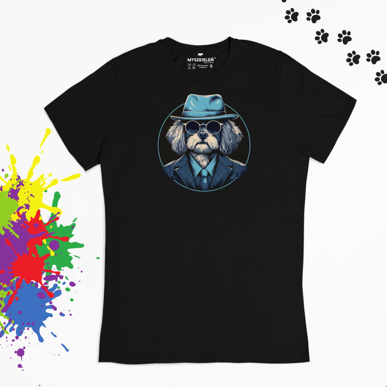 Tiszert z nadrukiem w wersji gangsterskiej psa.