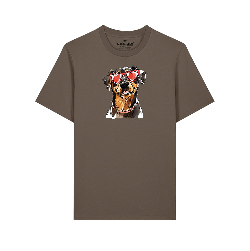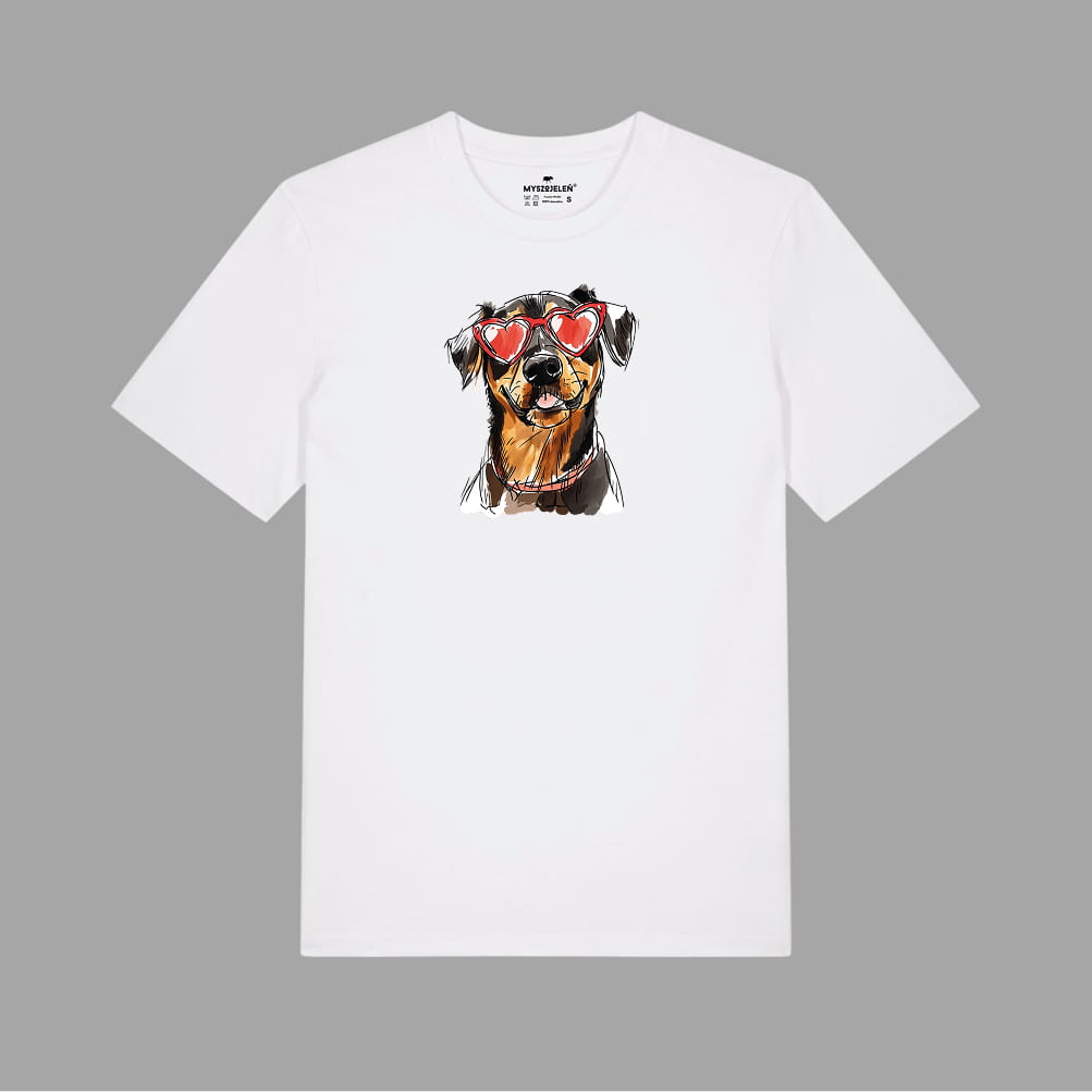 Koszulka z nadrukiem ROTTWEILER W OKULARACH (SERDUSZKA)