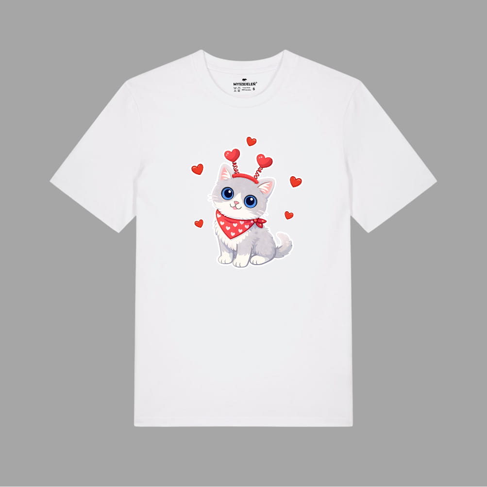 Koszulka z nadrukiem WALENTYNKOWY BIAŁY KOTEK