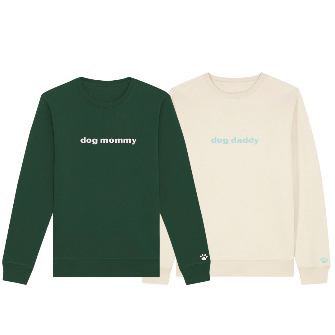 Matching bluzy (bez kaptura) z nadrukiem DOG MOMMY + DOG DADDY.