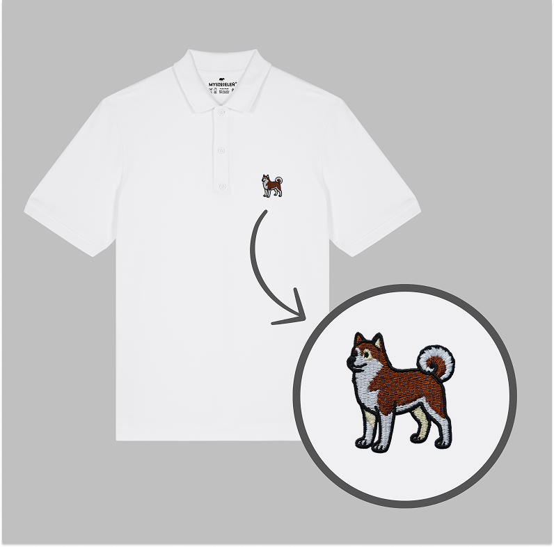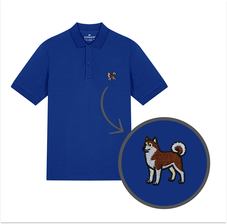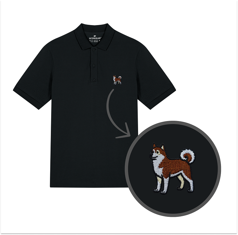 Męska koszulka polo premium z haftem AKITA INU na piersi.