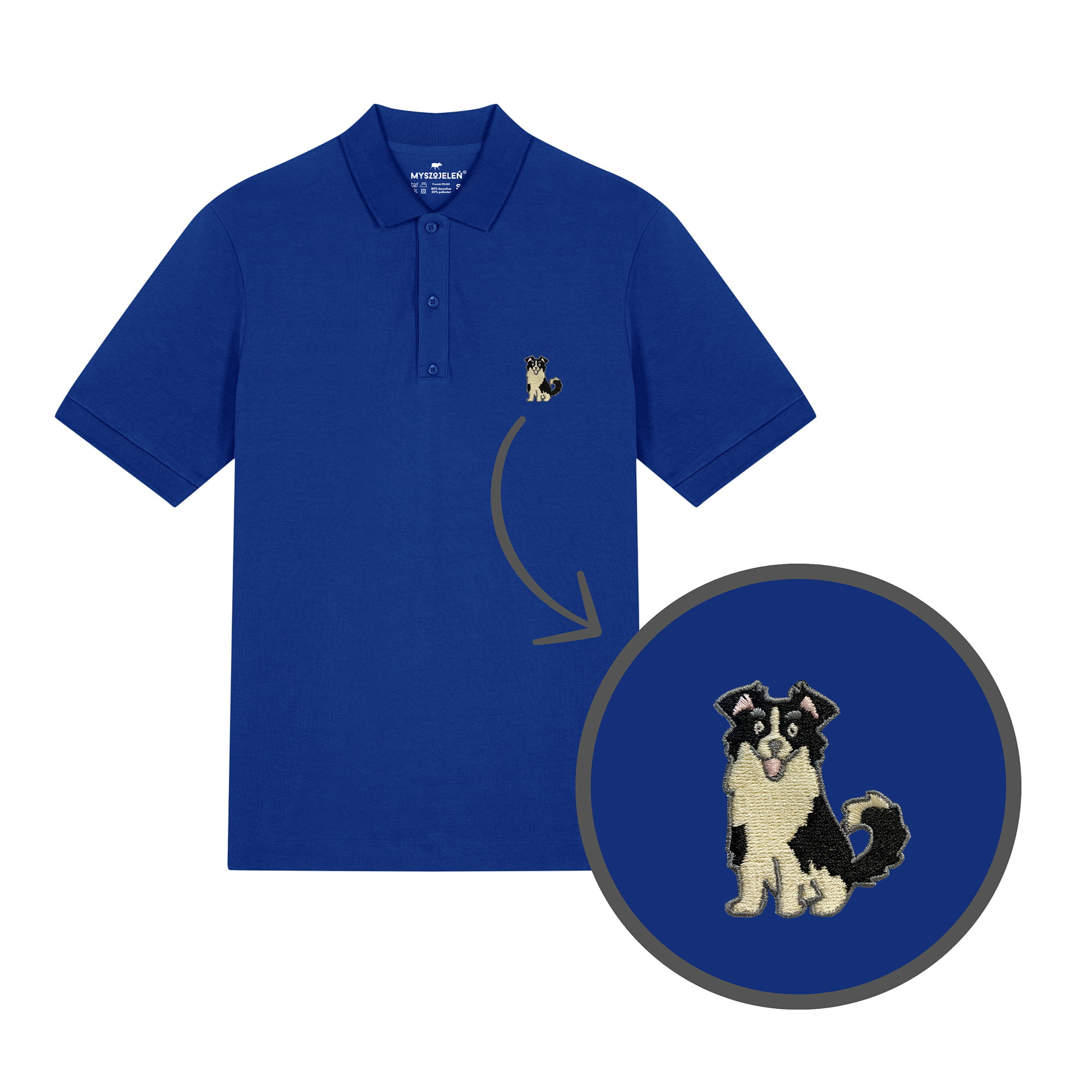 Męska haftowana koszulka polo BORDER COLLIE CZARNY