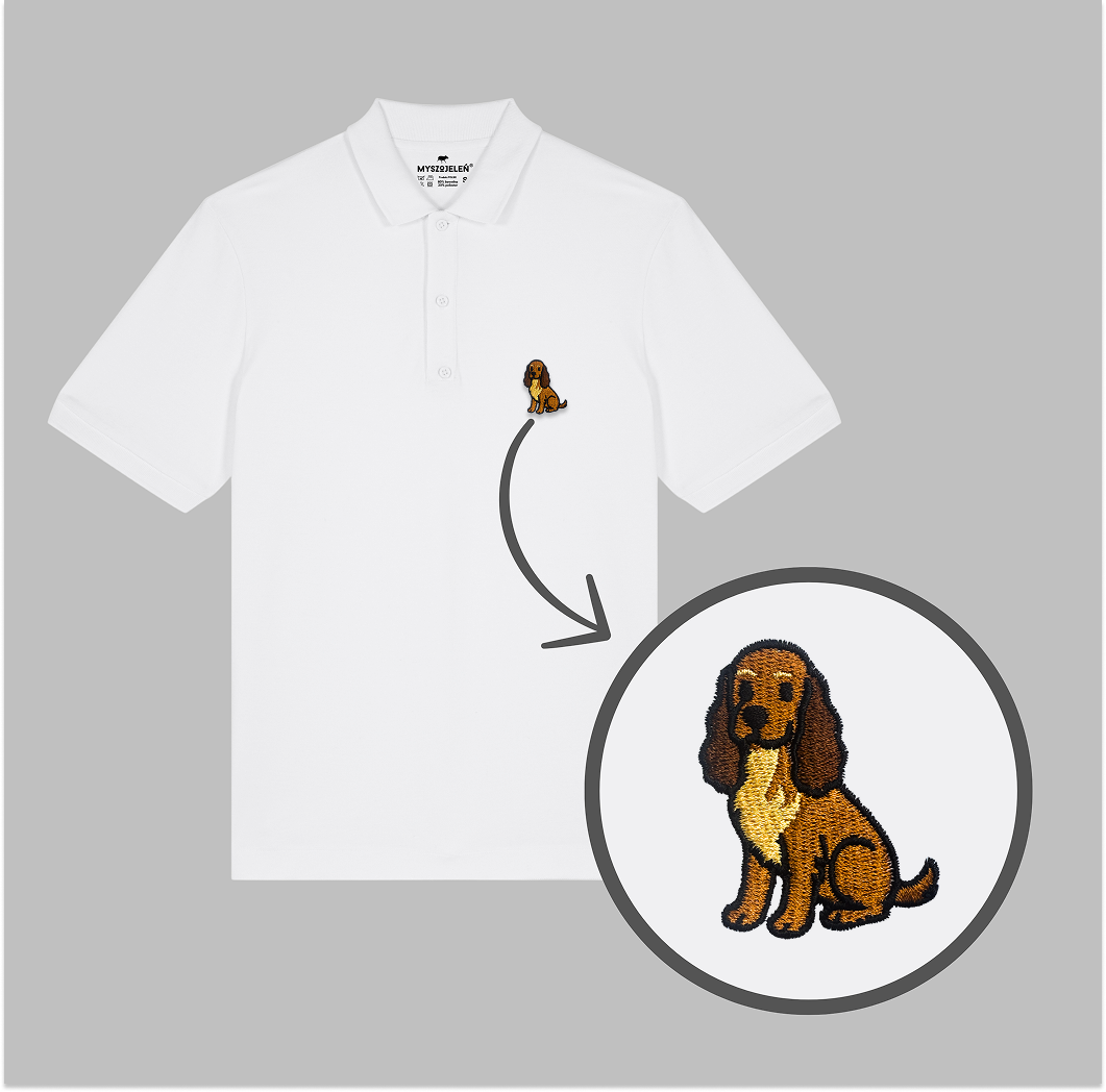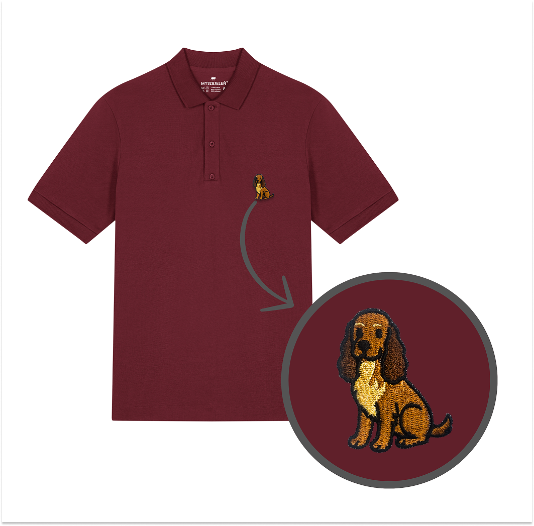 Męska koszulka polo premium z haftem COCKER SPANIEL na piersi.