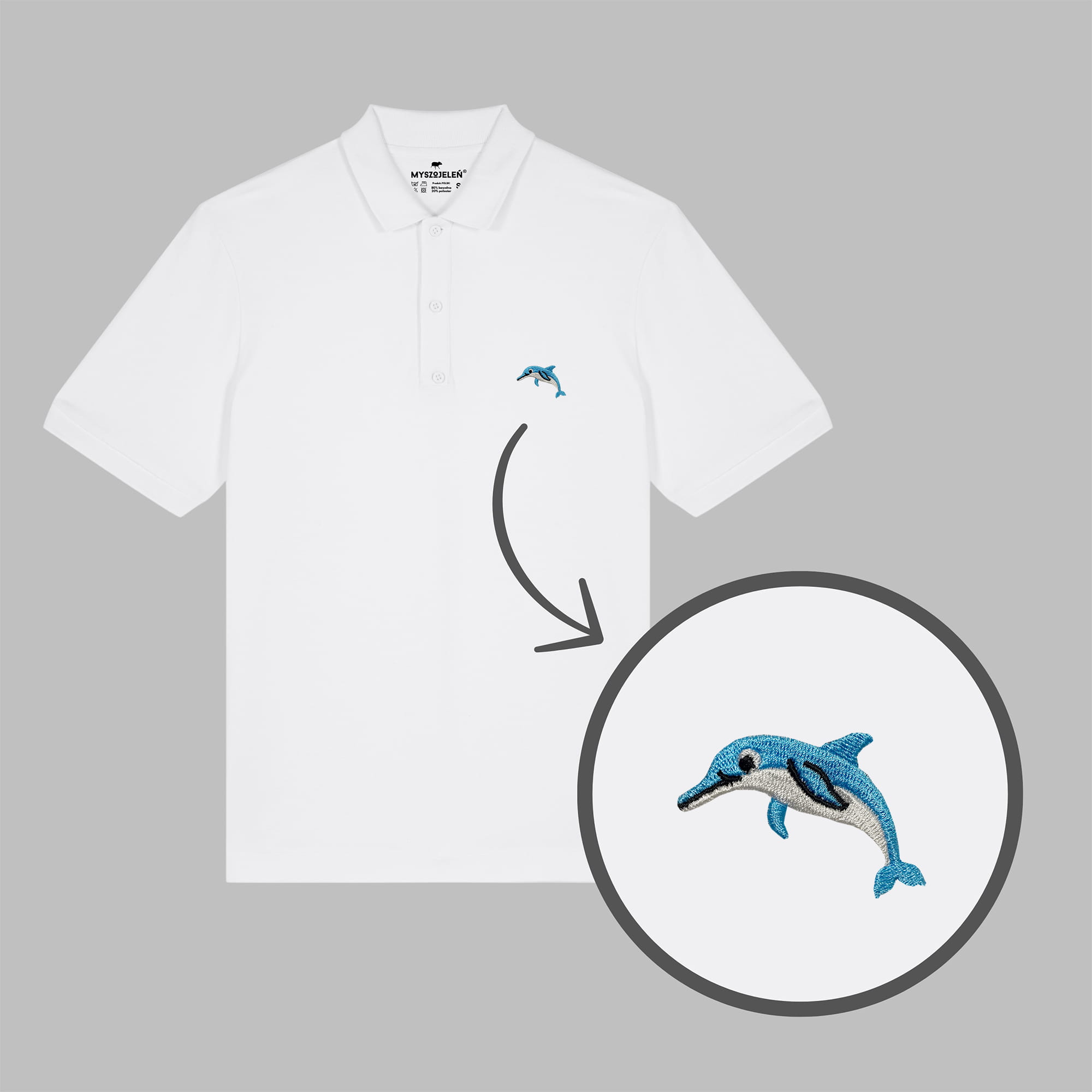 Męska koszulka polo premium z haftem DELFIN na piersi.