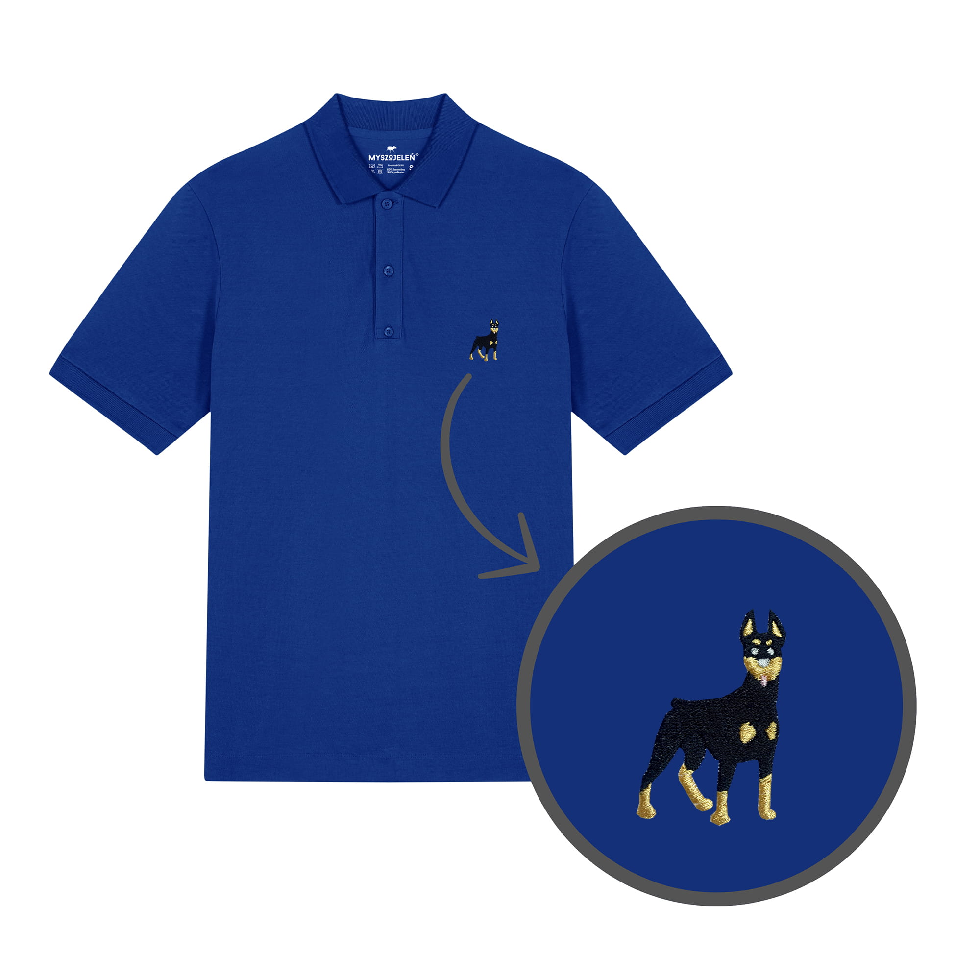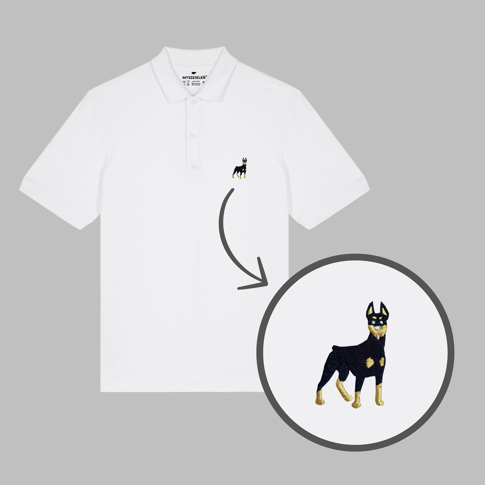 Męska koszulka polo premium z haftem DOBERMAN na piersi.