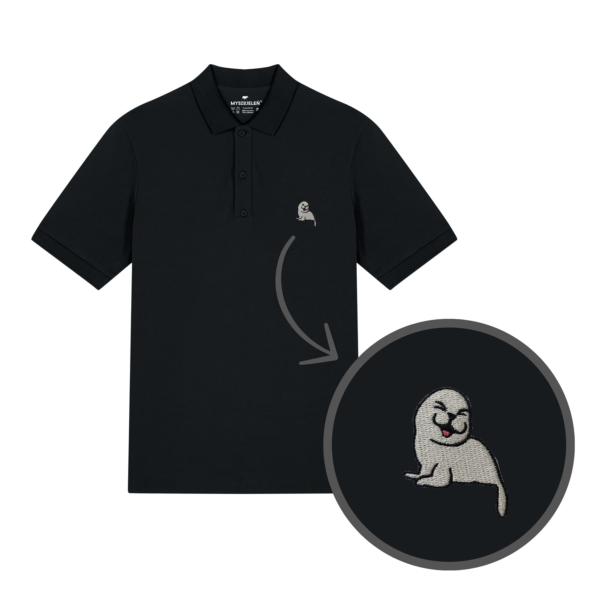 Męska koszulka polo premium z haftem FOKA na piersi.
