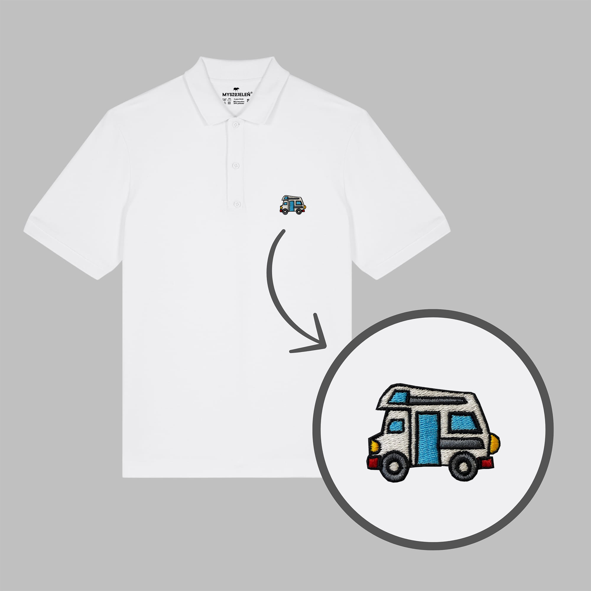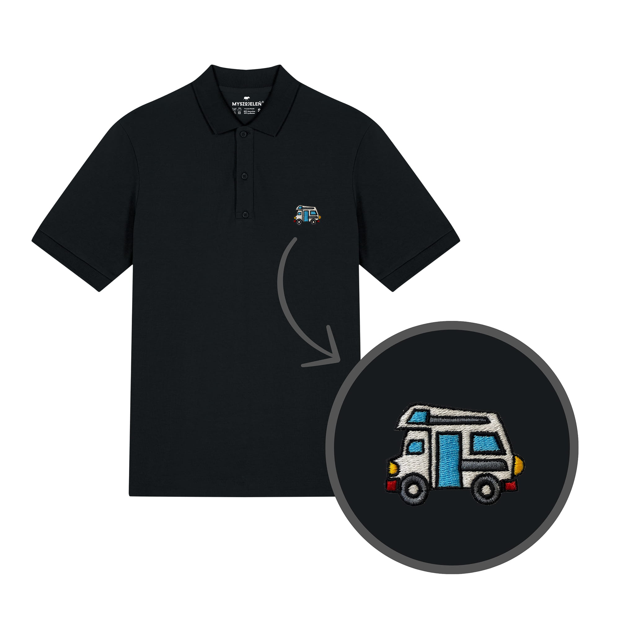 Męska koszulka polo premium z haftem KAMPER na piersi.