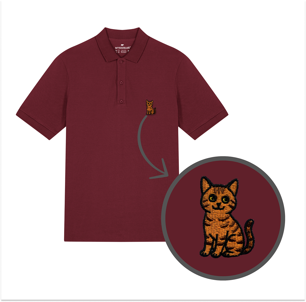 Męska haftowana koszulka polo KOT DACHOWIEC RUDY