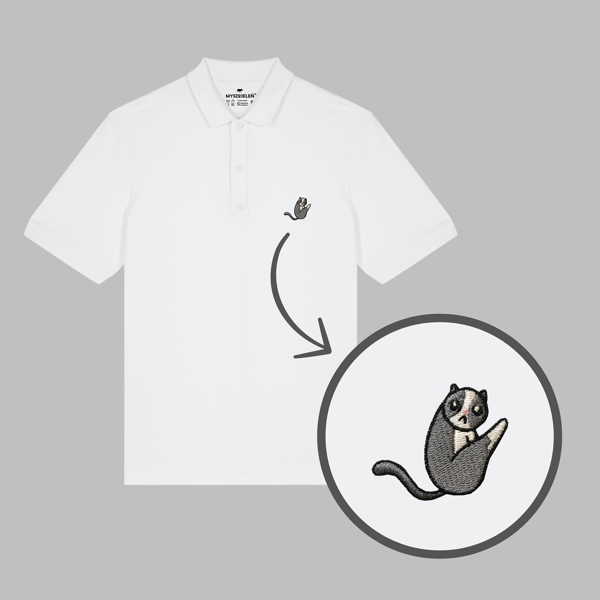 Męska haftowana koszulka polo KOTEK W KĄPIELI