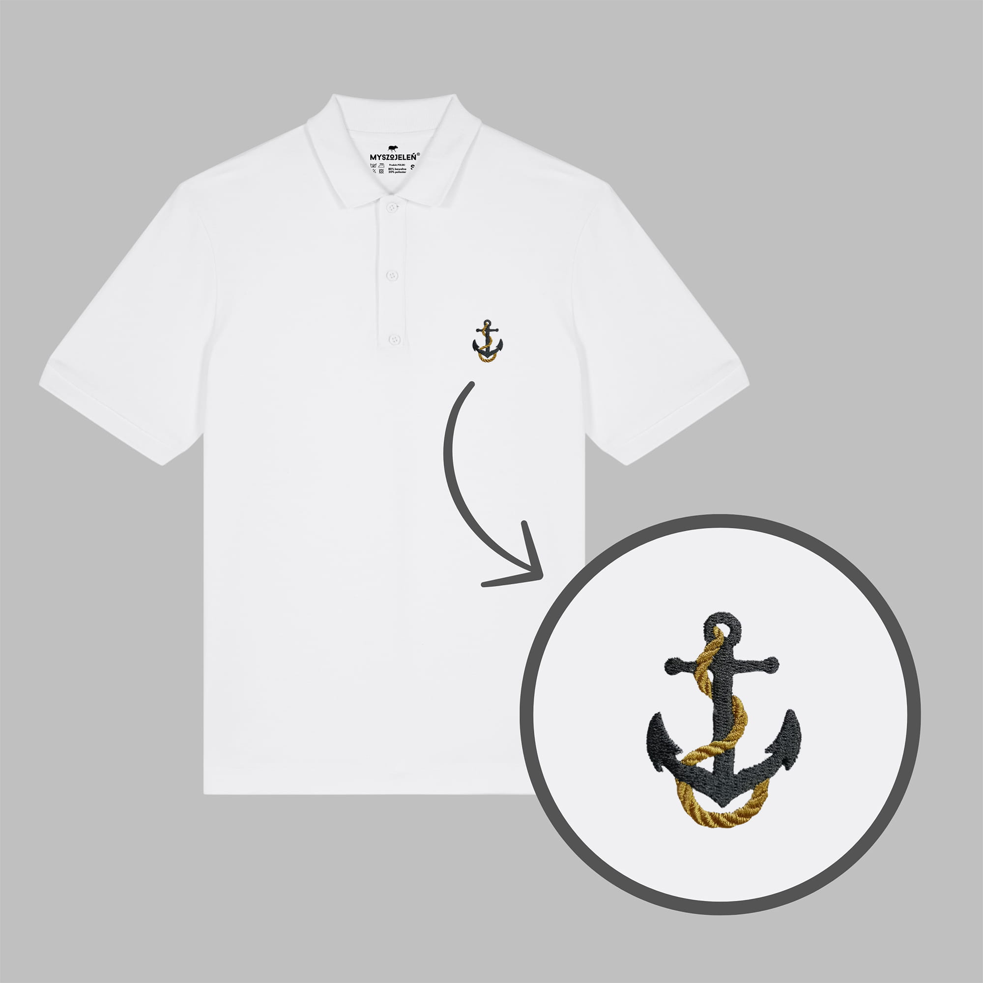 Męska koszulka polo premium z haftem KOTWICA na piersi.