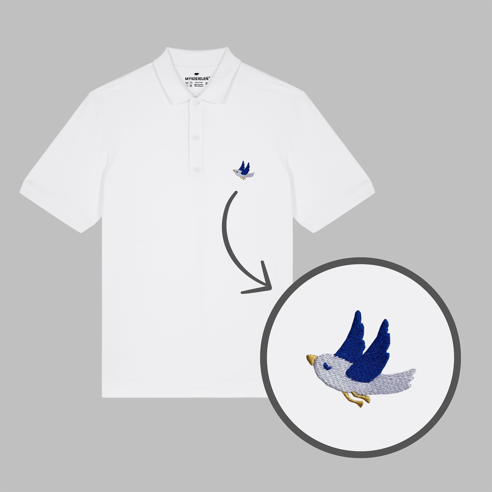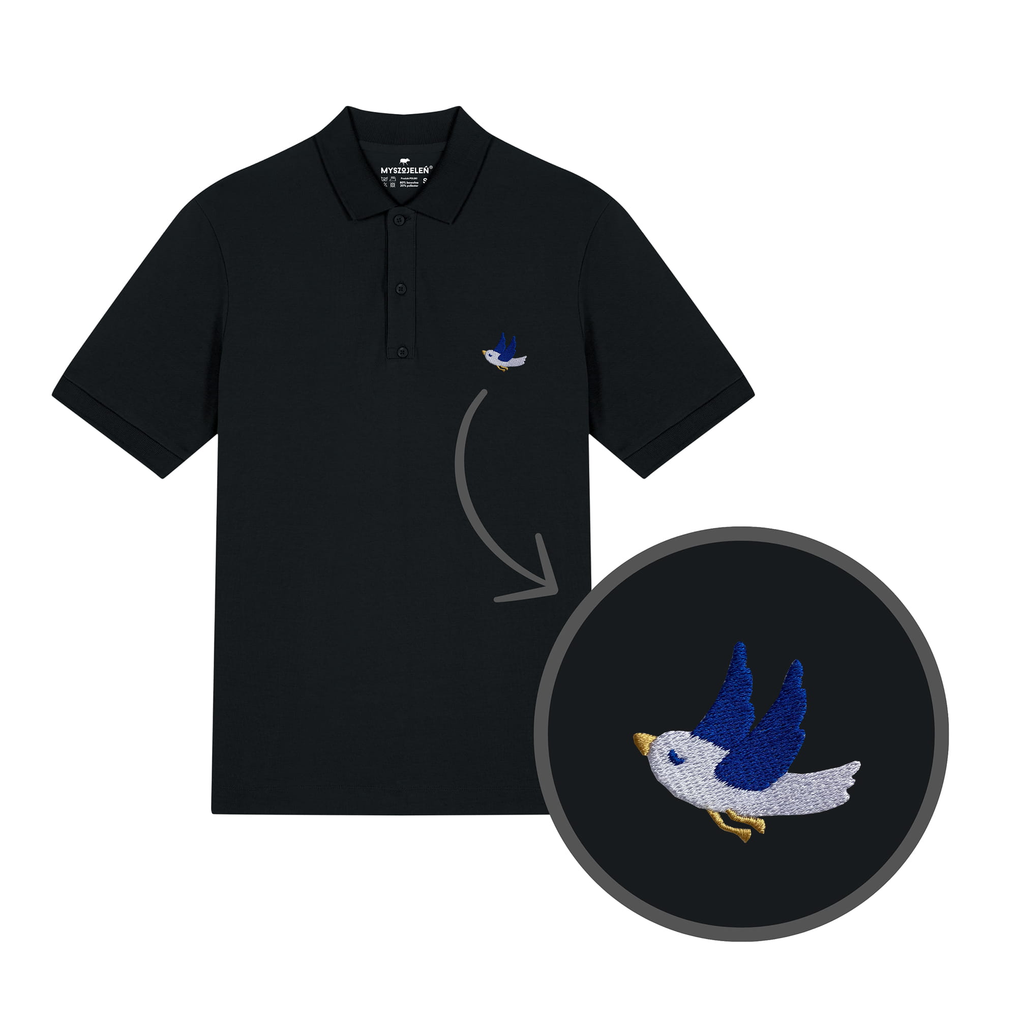 Męska koszulka polo premium z haftem MEWA na piersi.