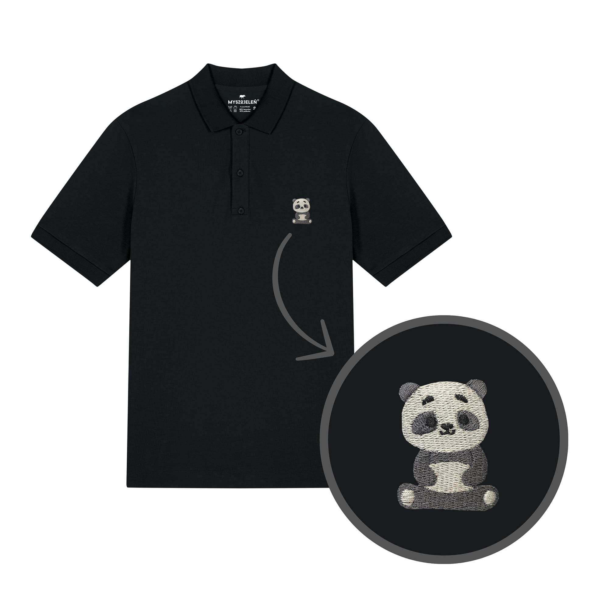 Męska koszulka polo premium z haftem PANDA na piersi.
