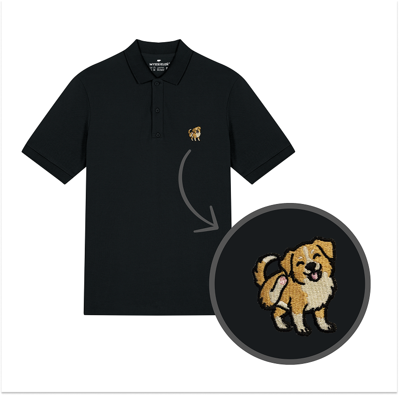 Męska haftowana koszulka polo PIES KUNDELEK DRAPANKO