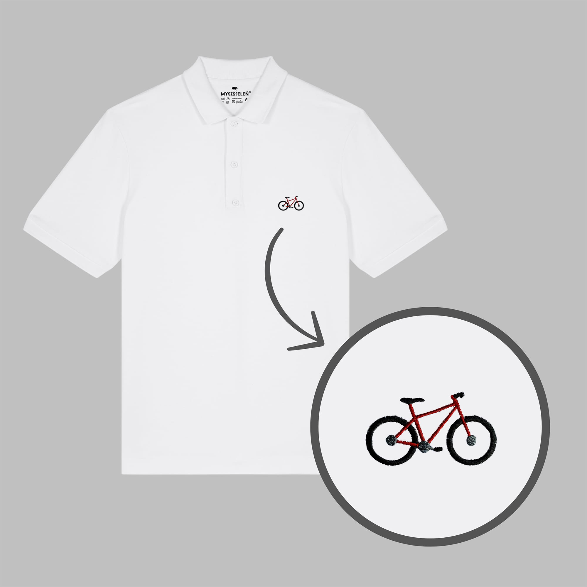 Męska koszulka polo premium z haftem ROWER MĘSKI na piersi.