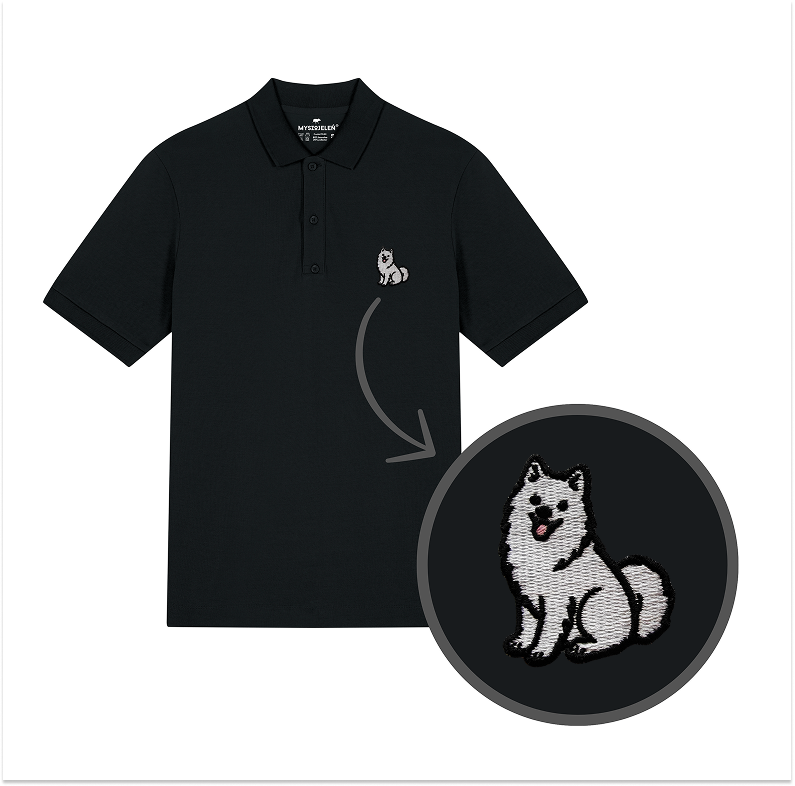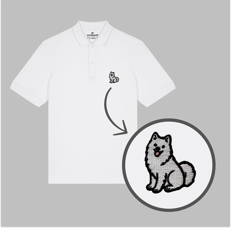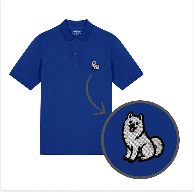 Męska koszulka polo premium z haftem SAMOYED na piersi.
