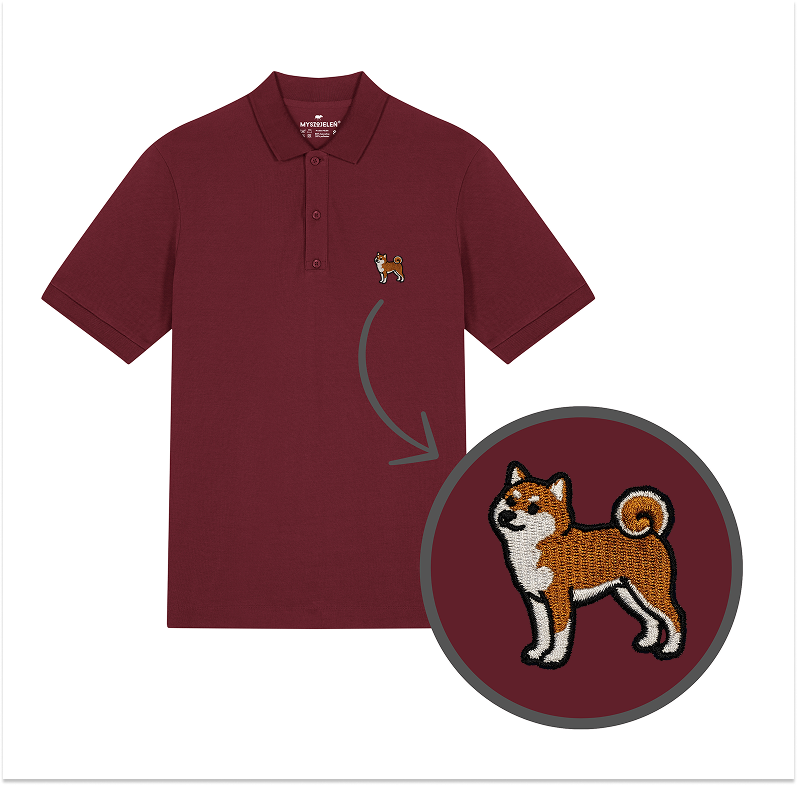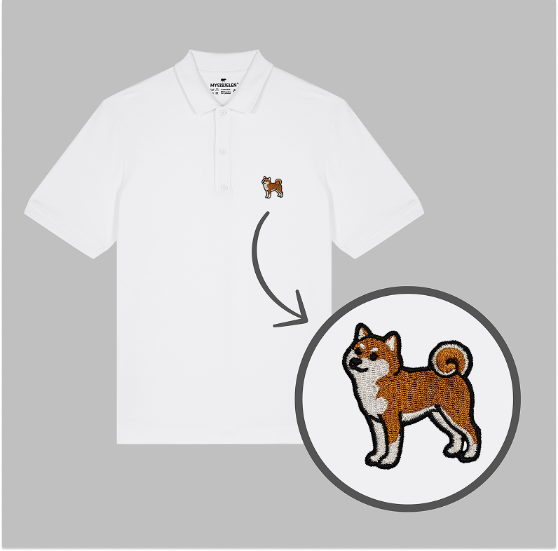 Męska haftowana koszulka polo SHIBA INU (PIESEŁ) KLASYK