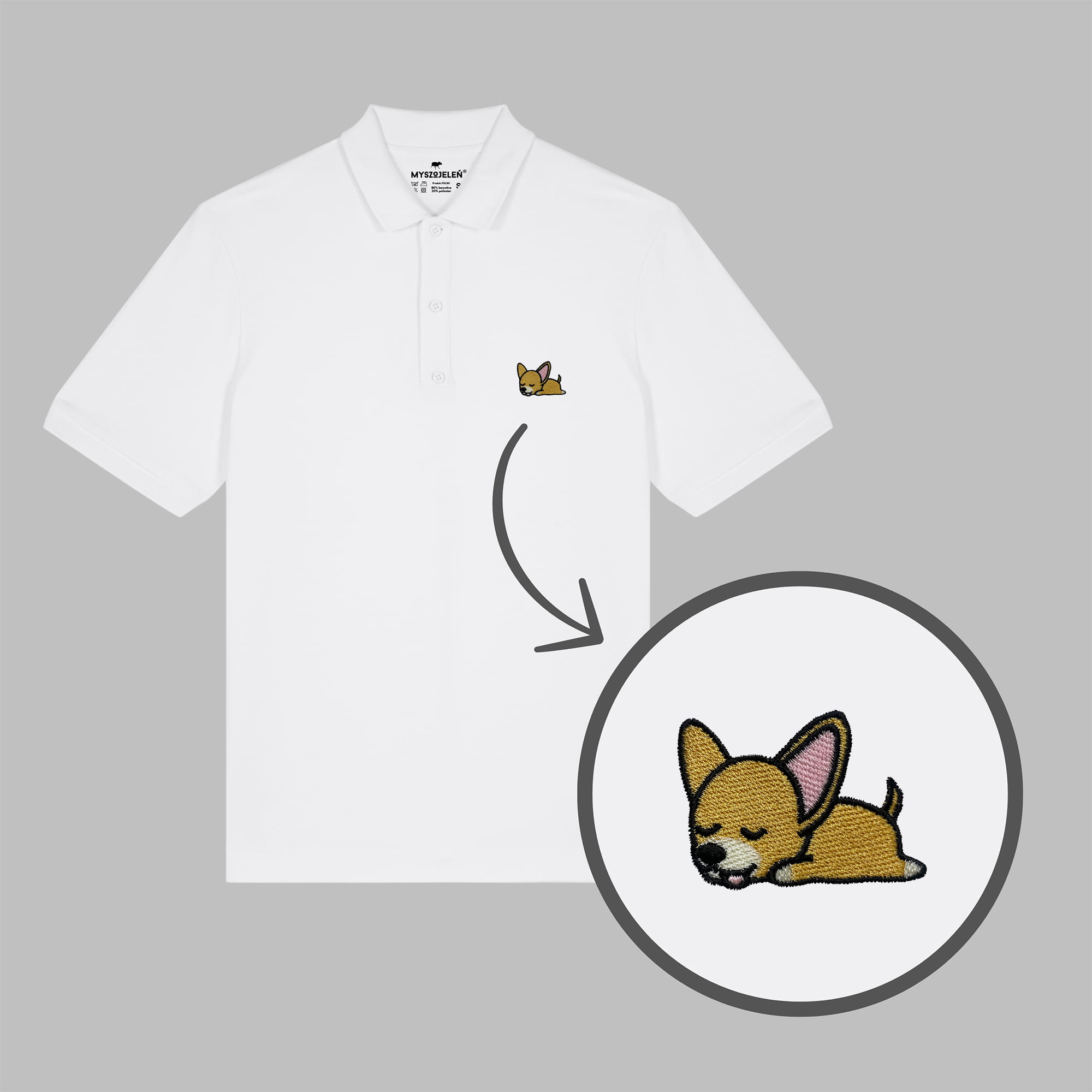 Męska haftowana koszulka polo ŚPIĄCY CHIHUAHUA (CZIŁAŁA)