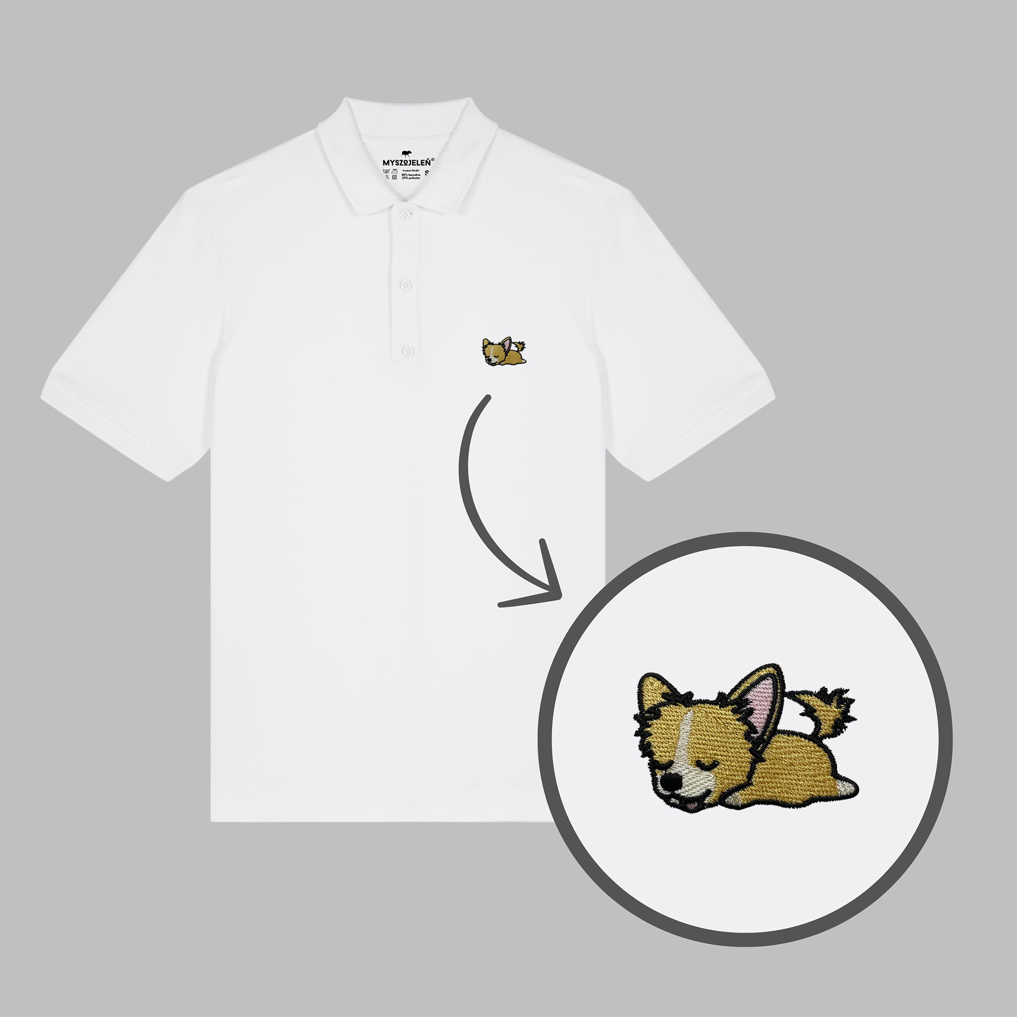 Męska haftowana koszulka polo ŚPIĄCY CHIHUAHUA DŁUGOWŁOSY (CZIŁAŁA)