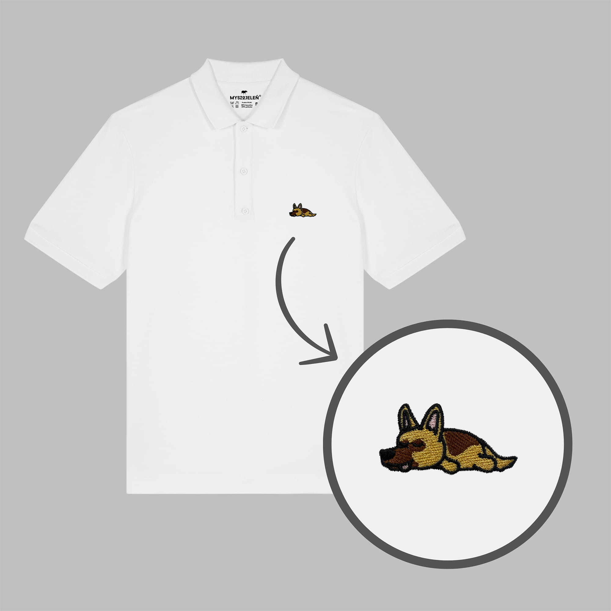 Męska haftowana koszulka polo ŚPIĄCY OWCZAREK NIEMIECKI (WILCZUR)