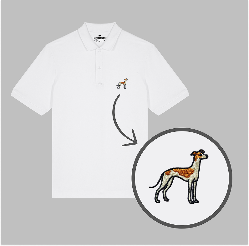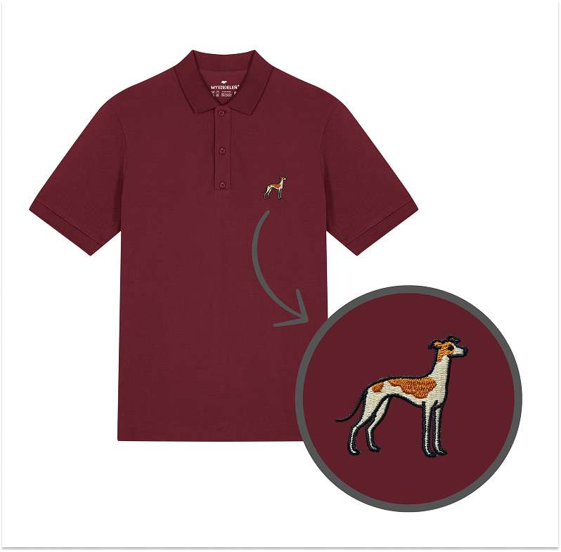Męska koszulka polo premium z haftem WHIPPET na piersi.