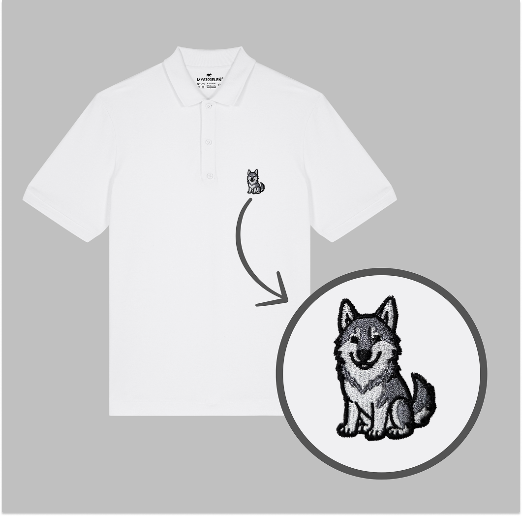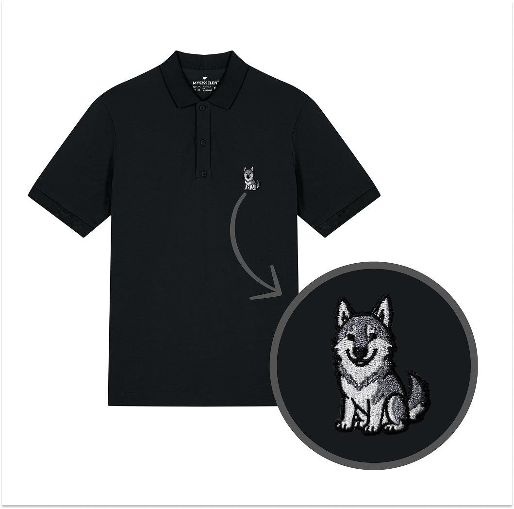 Męska koszulka polo premium z haftem WILK na piersi.