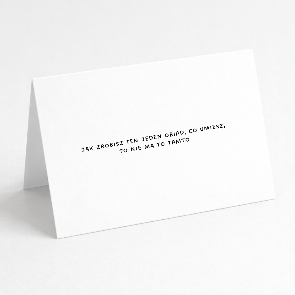 Składana pocztówka JAK ZROBISZ TEN JEDEN OBIAD, CO UMIESZ, TO NIE MA TO TAMTO.