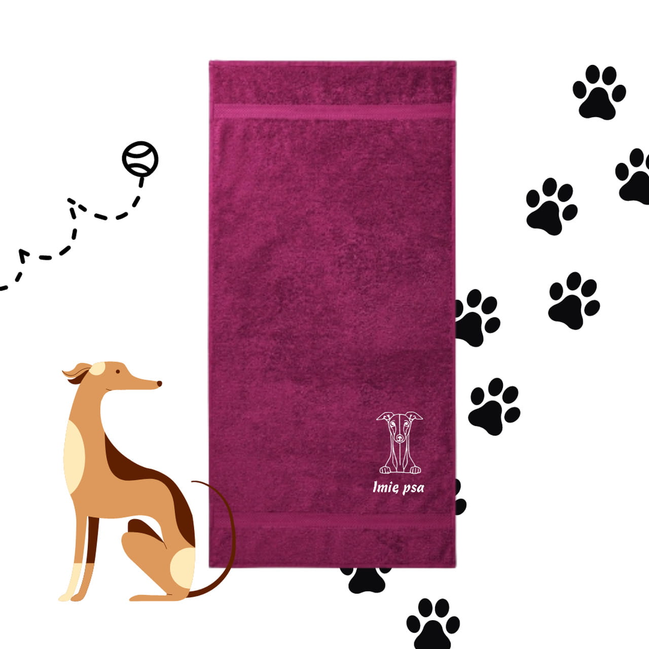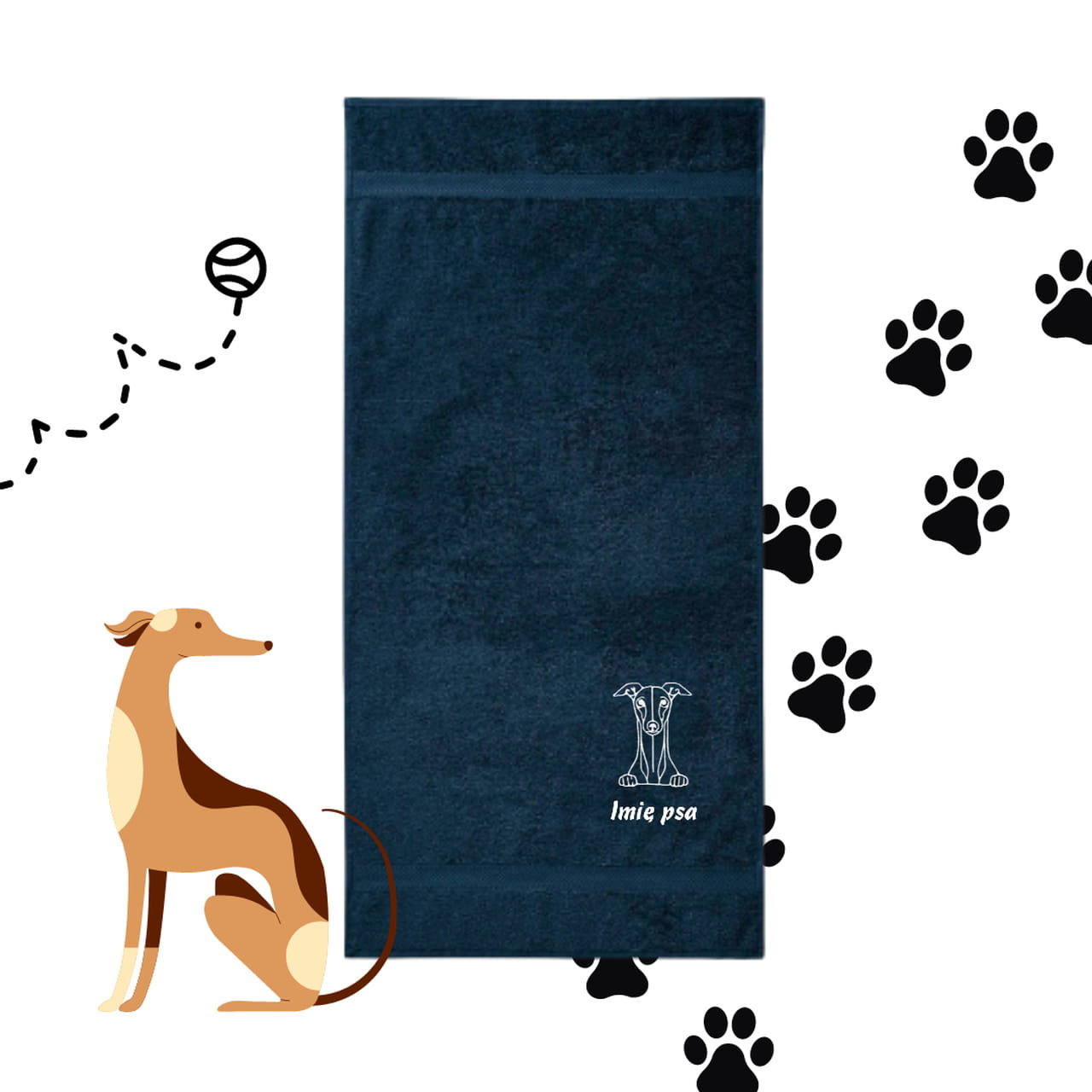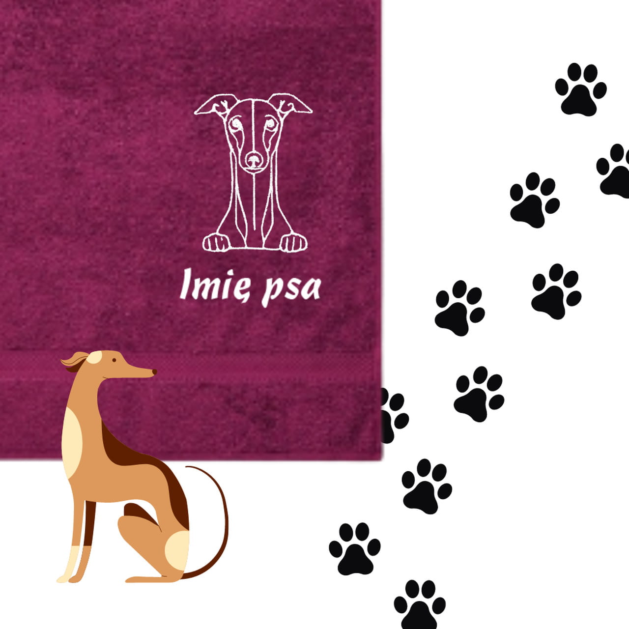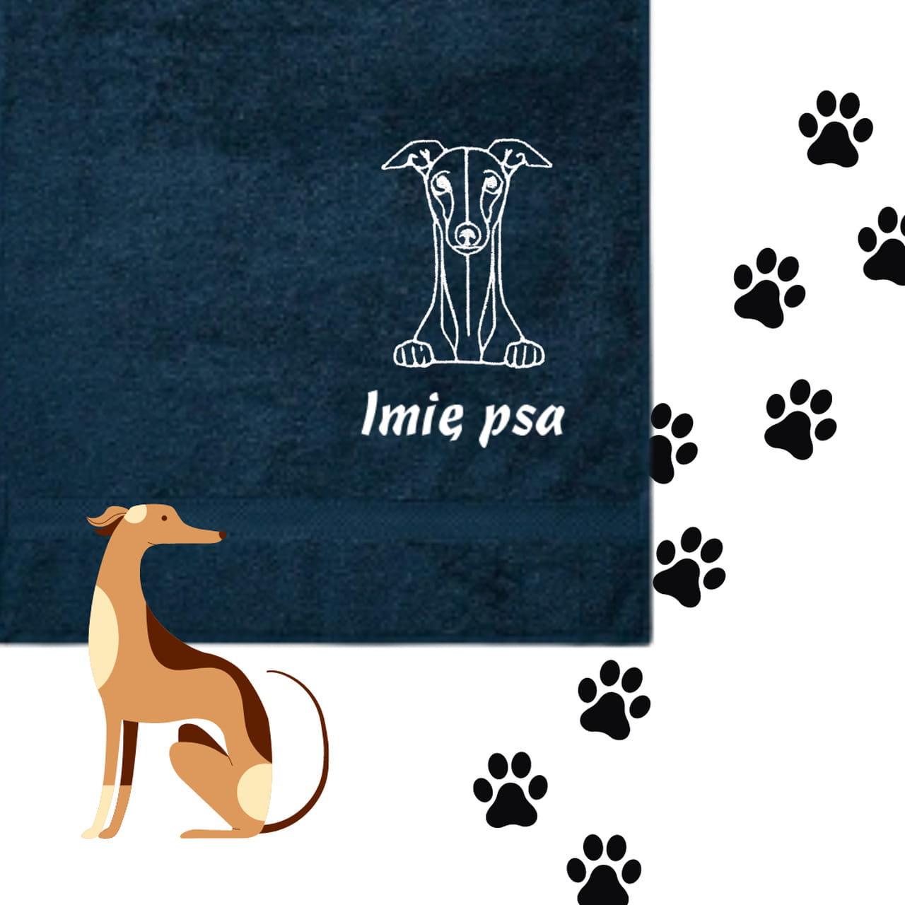 Ręcznik dla pieska - WHIPPET/ CHARCIK WŁOSKI + personalizacja